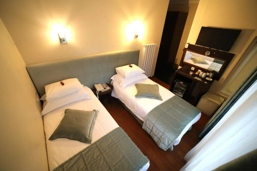 Location: A very nice place to stay for a reasonable price - hotel «Tria Elegance Istanbul» is located in Istanbul. This hotel is located in walking distance from the city center. You can take a walk and explore the neighbourhood area of the hotel. Places nearby: Hagia Sophia, Basilica Cistern and Blue Mosque. At the hotel: Spend an evening in a nice atmosphere of the bar. It’s time to have a nice meal! Stop by the restaurant. Free Wi-Fi is available on the territory. Ask for more information when checking in. Specially for tourists who travel by car, there’s a free parking zone. If you travel by car, you can park in a parking zone. The tour assistance desk of the hotel will help you book an excursion. The staff of the hotel will order a transfer for you. Additional services that the hotel offers to its guests: a laundry, dry cleaning, an ATM, ironing, press, car rental, a safe-deposit box and a concierge. The staff of the hotel speaks English and Russian. Room amenities: In the room, for you, there is a TV, a mini-bar, a bathrobe and slippers. The room equipment depends on its category. Meals: Information about the type of meals included in the price is indicated in the rate details. Extra info: