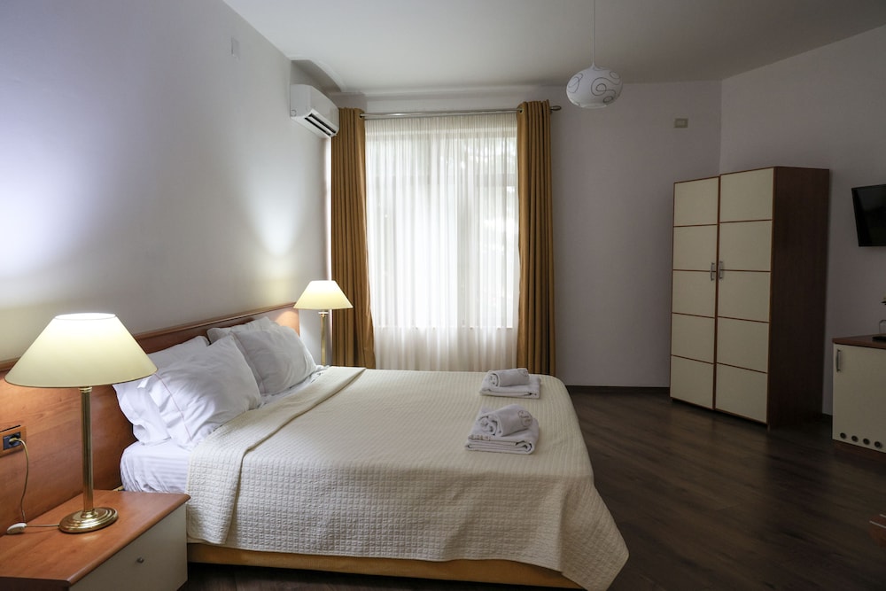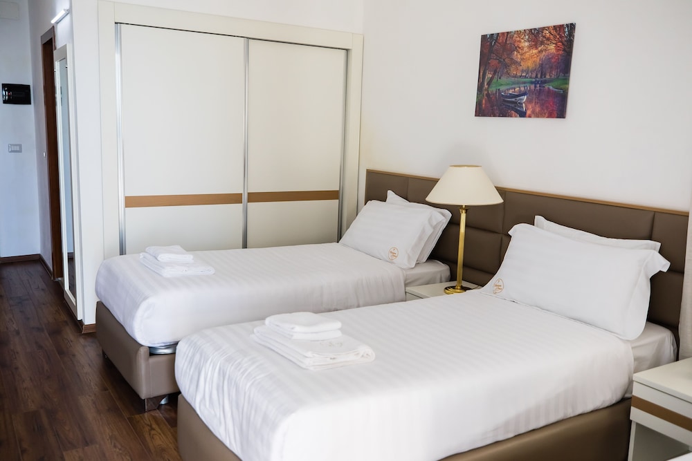 The Chateau Linza Resort is a Tourist hotel. The nightlife/restaurants are located in the hotel. Located in the mountains of Tirana, Chateau Linza Resort offers a Mediterranean experience with access to an outdoor pool, terrace, and garden. Guests can enjoy complimentary wireless internet access, concierge services, and a hair salon. Dining options include a restaurant, two coffee shops/cafes, and room service (during limited hours). Guests can relax with drinks from the poolside bar or two bars/lounges. A complimentary local cuisine breakfast is served daily from 8:00 AM to 10:00 AM. The hotel provides amenities such as a computer station, dry cleaning/laundry services, and luggage storage. For events, there is a conference center and two meeting rooms. A roundtrip airport shuttle is available for a surcharge (24 hours), and free self-parking is provided onsite. The 28 air-conditioned rooms feature flat-screen televisions, cable programming, desks, complimentary bottled water, and bathrooms with separate bathtubs and showers, bidets, and hair dryers. Housekeeping is provided daily. Nearby attractions include Cable Car and Bunk’Art. Nene Tereza International Airport (TIA) is the preferred airport.Tesis Bilgileri