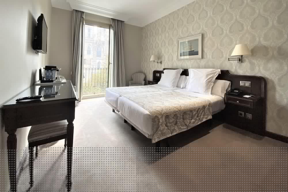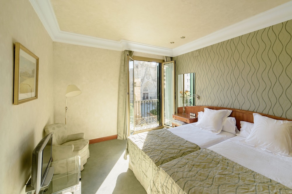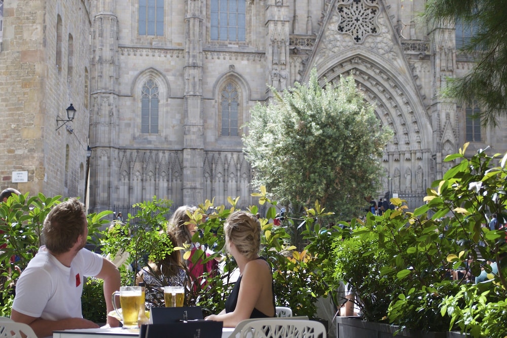 The Lamaro Hotel is a Tourist hotel. Located in Gothic Quarter area. The nightlife/restaurants are right next to the hotel. Located in the city center of Barcelona, this 4-star hotel, established in 1951, is near the Gothic Quarter and the Urquinaona station. It offers 122 rooms, each equipped with air conditioning, a minibar, a safe, a hairdryer, and an ironing set. Guests can enjoy complimentary wireless internet access, concierge services, and a rooftop terrace bar with views of the gothic Cathedral. The hotel features a restaurant with Spanish cuisine and a bar/lounge, as well as room service during limited hours. A buffet breakfast is available daily (surcharge). Amenities include a 24-hour front desk, a computer station, dry cleaning/laundry services, wedding services, and a banquet hall. The hotel has conference space and meeting rooms. Nearby attractions include the Barcelona Cathedral, Portal de l'Angel, and La Rambla. Barcelona El Prat Airport (BCN) is the preferred airport.Otel Konumu