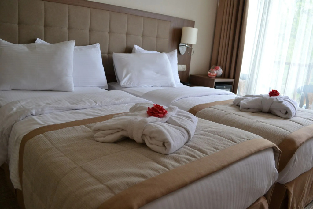 Location: Want to take a rest and explore the city? Hotel «Hotel Sputnik Batumi» is located in Batumi. This hotel is located minutes away from the city center. You can take a walk and explore the neighbourhood area of the hotel — Argo Cableway, Cathedral of the Nativity of the Blessed Virgin and Orta Jame Mosque. At the hotel: You can stop by the bar. Taste the local cuisine and have a rest in the restaurant. The hotel cafe is a nice place to have a snack. Want to be always on-line? Wi-Fi is available. If you travel by car, you can park in a parking zone for free. If you travel by car, there’s a parking zone. The following services are also available for the guests: a sauna and a doctor. Sports fans will be able to enjoy a table tennis area. You will find these entertainment amenities on the premises: a ping-pong area. Tourists who can’t live without swimming will appreciate a pool and an outdoor pool. For participants of business meetings, there is a conference hall. Children will be happy, there is a playroom for them. Want to have an excursion? Consult the tour assistance desk of the hotel. For the free movement around the city, the hotel offers a transfer for you. There are other services available for the guests of the hotel. For example, a laundry, dry cleaning, an ATM, private check-in and check-out, ironing, press, car rental, a safe-deposit box and a concierge. The staff of the hotel speaks English and Russian. Room amenities: Guests will find the following in the room: a shower, a TV, a mini-bar and slippers. Please note that the listed services may not be available in all the rooms. Meals: Information about the type of meals included in the price is indicated in the rate details. Children and information about extra beds: Fee for an extra bed: 80.00 GEL per night. The number of extra beds depends on the room category. You must take a look at the information about the size of the selected room. Special living conditions: You can request the documents necessary for a visa, the service is provided for an additional fee. Any additional fee will have to be paid even if the booking is subsequently cancelled, and all the agreements exist exclusively between you and the provider of the documents. Extra info:Know Before You Go