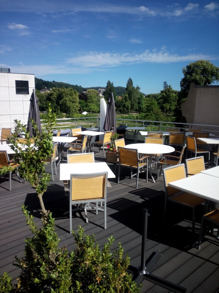 Located in the heart of Épinal, the Mercure Épinal Centre is a short walk from the city center and attractions like the Museum of Ancient and Contemporary Art, Place des Vosges and St. Maurice Basilica. The hotel offers air-conditioned rooms with flat-screen TVs, satellite channels, and complimentary WiFi. Guests can enjoy French cuisine at the hotel's restaurant, Le Mouton Blanc, with terrace dining available in the summer overlooking the Moselle River. The hotel also features a bar, a fitness center, and a relaxation area with a sauna and whirlpool. Beauty treatments including massages, body treatments and facials are available. For business travelers, the hotel provides meeting rooms and a 24-hour front desk. Parking is available for a surcharge, and the hotel has electric car charging stations.