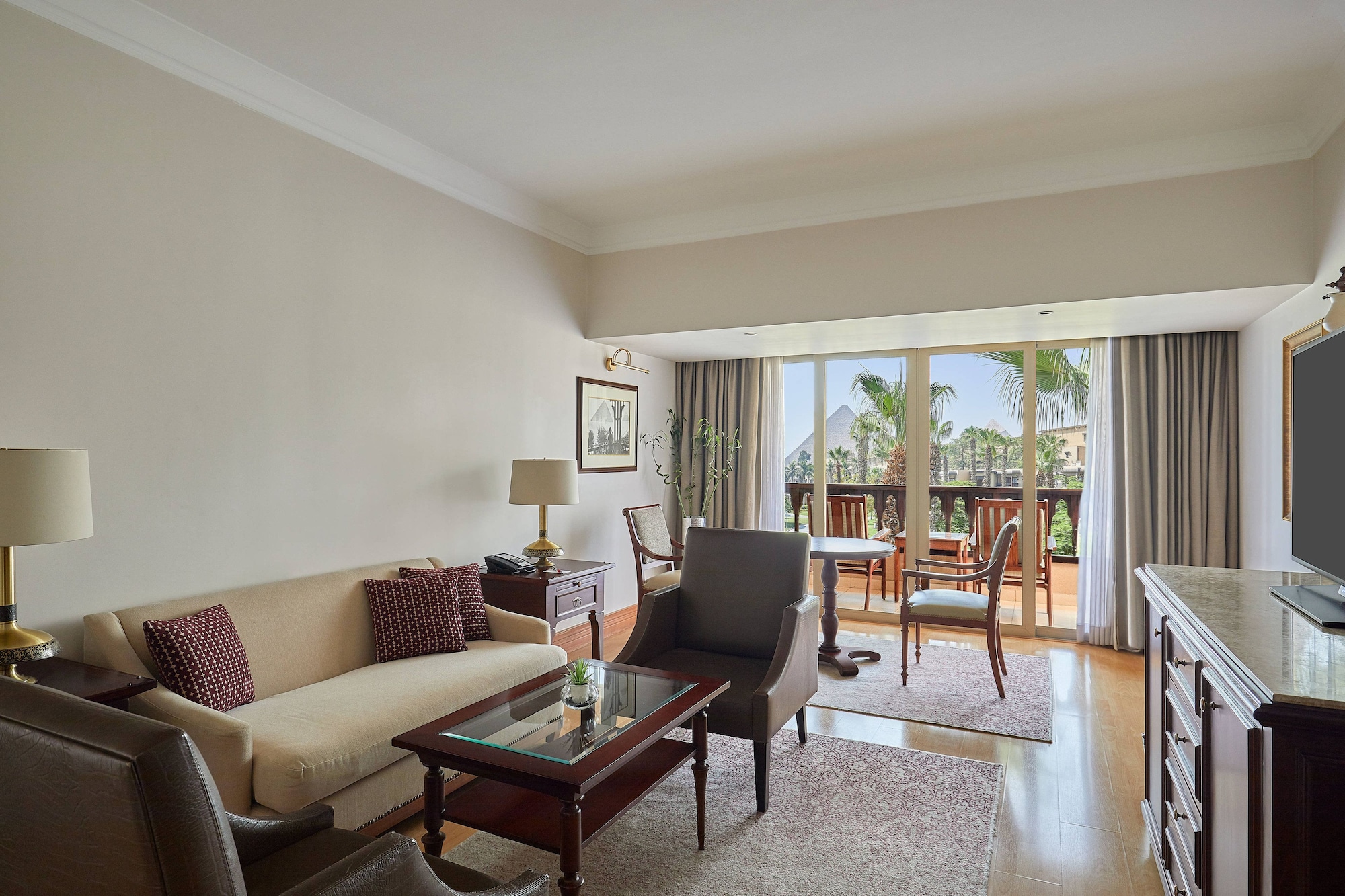 The Marriott Mena House Cairo is a Tourist hotel. The nightlife/restaurants are easily accessible by taxi or bus from the hotel. Marriott Mena House Cairo, a Colonial-style luxury hotel in Giza (Al Haram), offers 331 guestrooms with minibars, espresso makers, private balconies, 49-inch flat-screen TVs with satellite programming, complimentary Wi-Fi, and private bathrooms featuring shower/tub combinations, complimentary toiletries, and bathrobes. The hotel boasts a spa with massage services, a health club, an outdoor pool, and a hot tub. Dining options include three restaurants (one featuring international cuisine), a coffee shop/cafe with snacks, a poolside bar, and two bars/lounges. Full breakfast is available daily (fee applies). Additional amenities include complimentary Wi-Fi, concierge services, wedding services, a business center, complimentary lobby newspapers, dry cleaning/laundry services, and 15,070 square feet (1,400 square meters) of event space comprising a conference center and seven meeting rooms. Self-parking is available (fee applies). The hotel is situated near the Giza Pyramid Complex, less than half a kilometer from the Pyramids, and offers convenient access to other Giza attractions including the Great Sphinx of Giza and the Grand Egyptian Museum. Cairo International Airport (CAI) is approximately 48.8 km away.Tesis Bilgileri