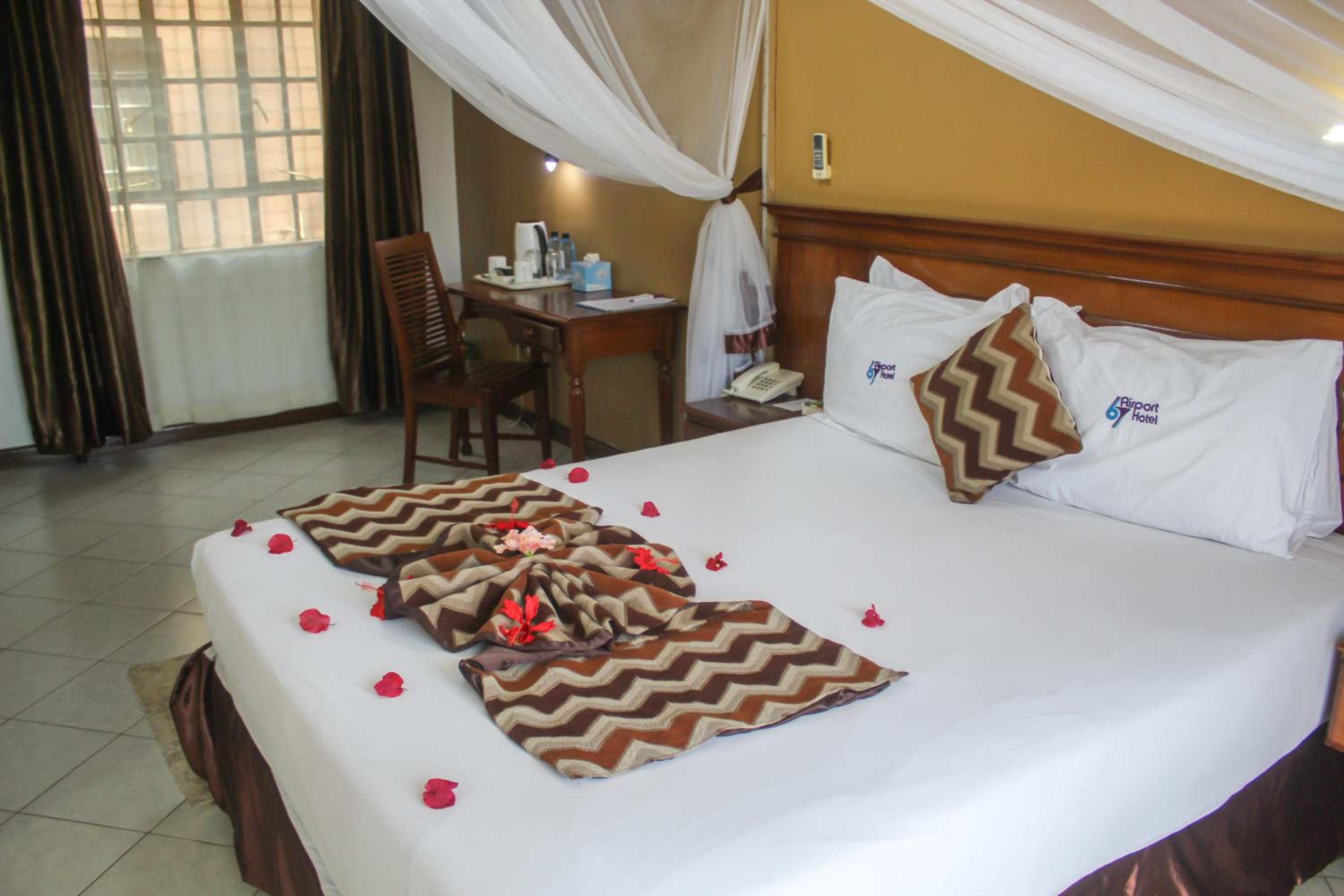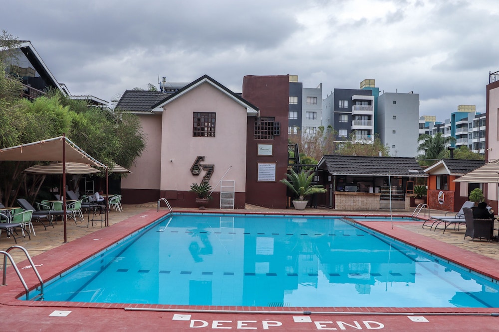 The 67 Airport Hotel is a hotel. Located in Syokimau, 67 Airport Hotel offers 62 air-conditioned guestrooms with complimentary wireless internet access and satellite programming. Each room includes a private bathroom with a shower, complimentary toiletries, and slippers, as well as a safe and desk. The hotel features 3 restaurants, a coffee shop/cafe, a bar/lounge, and 2 poolside bars. Guests can enjoy recreational amenities such as an outdoor pool, a steam room, and a 24-hour fitness center, as well as spa services including massages, body treatments, and facials. Additional amenities include a business center, complimentary newspapers in the lobby, concierge services, a hair salon, dry cleaning/laundry services, and conference facilities. A complimentary roundtrip airport shuttle is available 24 hours, and free parking is provided. The hotel is near the Gateway Mall and Jomo Kenyatta International Airport.Tesis Bilgileri