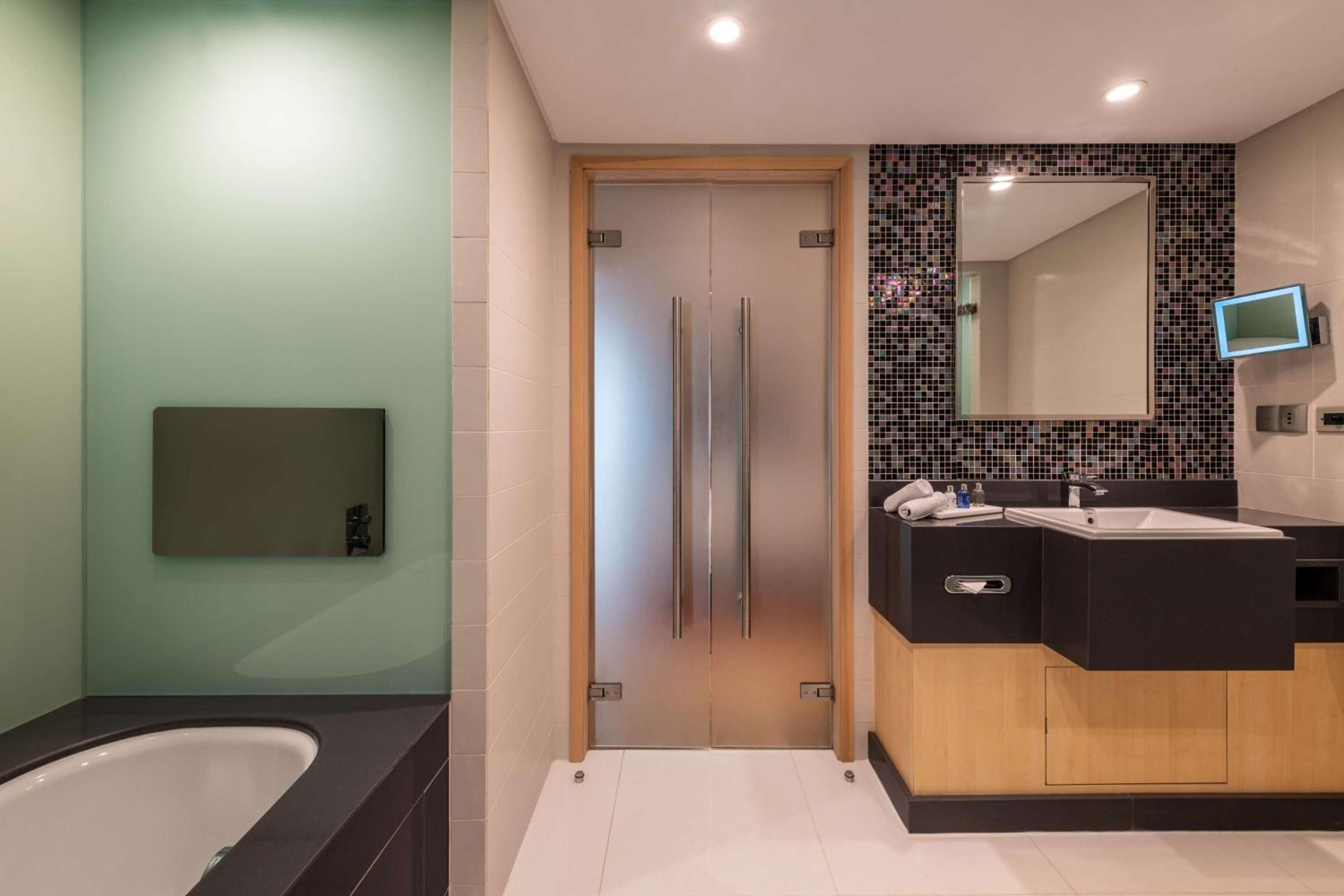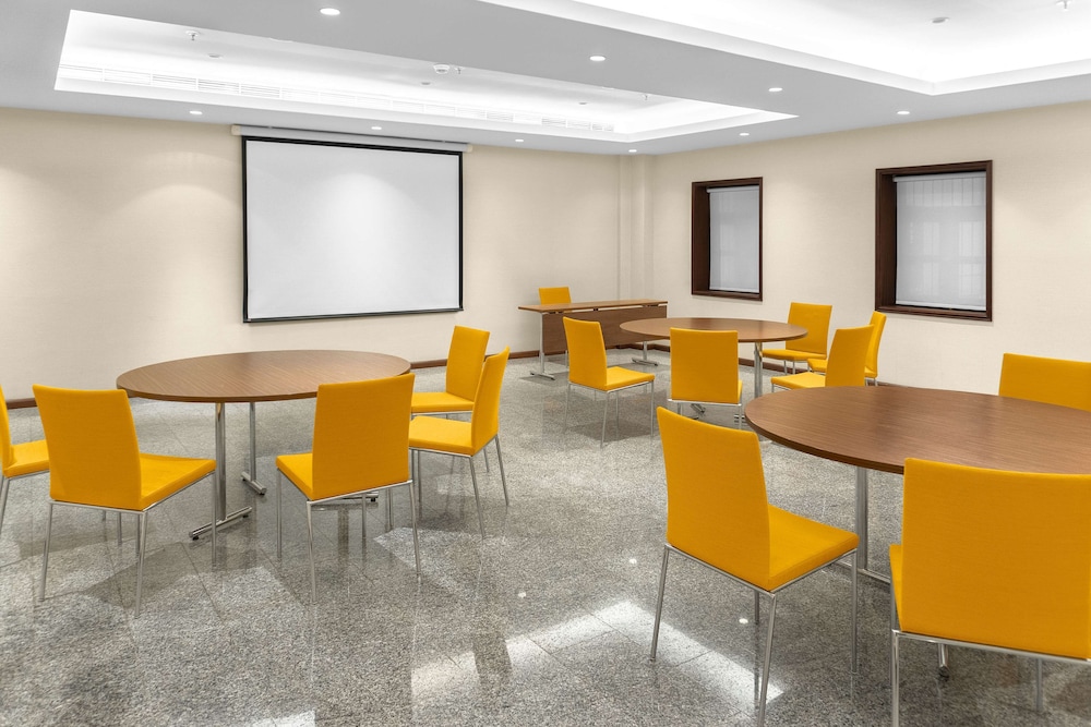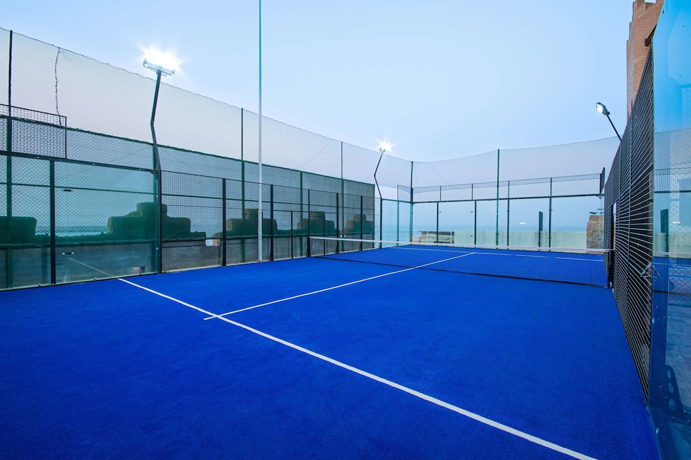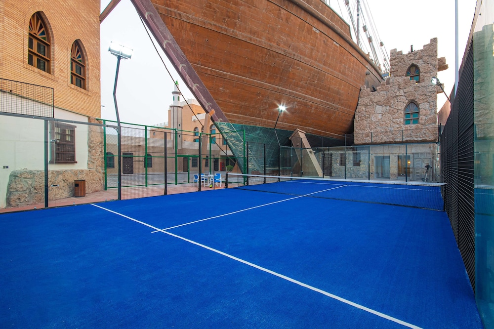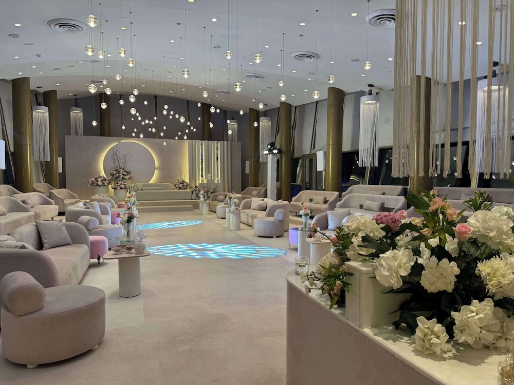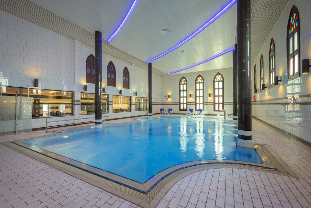 The RADISSON BLU HOTEL KUWAIT is a Beach Resort, Business, Child Friendly, City hotel, Design Trendy, Eco Friendly, Full Service, Honeymoon, Modern, Tourist hotel. Located in Salwa - Beach area. The nightlife/restaurants are located in the hotel. The Radisson Blu Hotel, Kuwait, a seafront Art Deco hotel in Salwa, offers 190 rooms and suites with three unique designs. Enjoy free high-speed Wi-Fi, minibars, and LED televisions in each room. Bathrooms feature separate bathtubs and showers with rainfall showerheads. Dining options include international cuisine at Al Bustan, a Chinese restaurant (Peacock), a coffee shop/cafe, and a traditional Kuwaiti Dhow (Al Boom) offering fresh seafood and grills. The Sky Lounge rooftop bar offers sushi, sashimi, and nigiri. 24-hour room service is available. Recreational amenities include indoor and outdoor pools, a fitness center with squash courts, outdoor sports facilities, a spa with massage services, a sauna, and a hot tub. The hotel also boasts a 24-hour business center, meeting rooms, a conference center, and the Al Hashemi II, a traditional boat holding a Guinness World Record. A complimentary airport shuttle (surcharge for 24-hour availability) and free valet parking are provided. Babysitting services are available for a surcharge. Nearby attractions include Arabella Mall (0.4 km), Al-Hashemi Marine Museum (0.6 km), Marina Mall (4 km), and The Scientific Center Kuwait (6 km). Kuwait International Airport (KWI) is 12.7 mi away.Otel Konumu