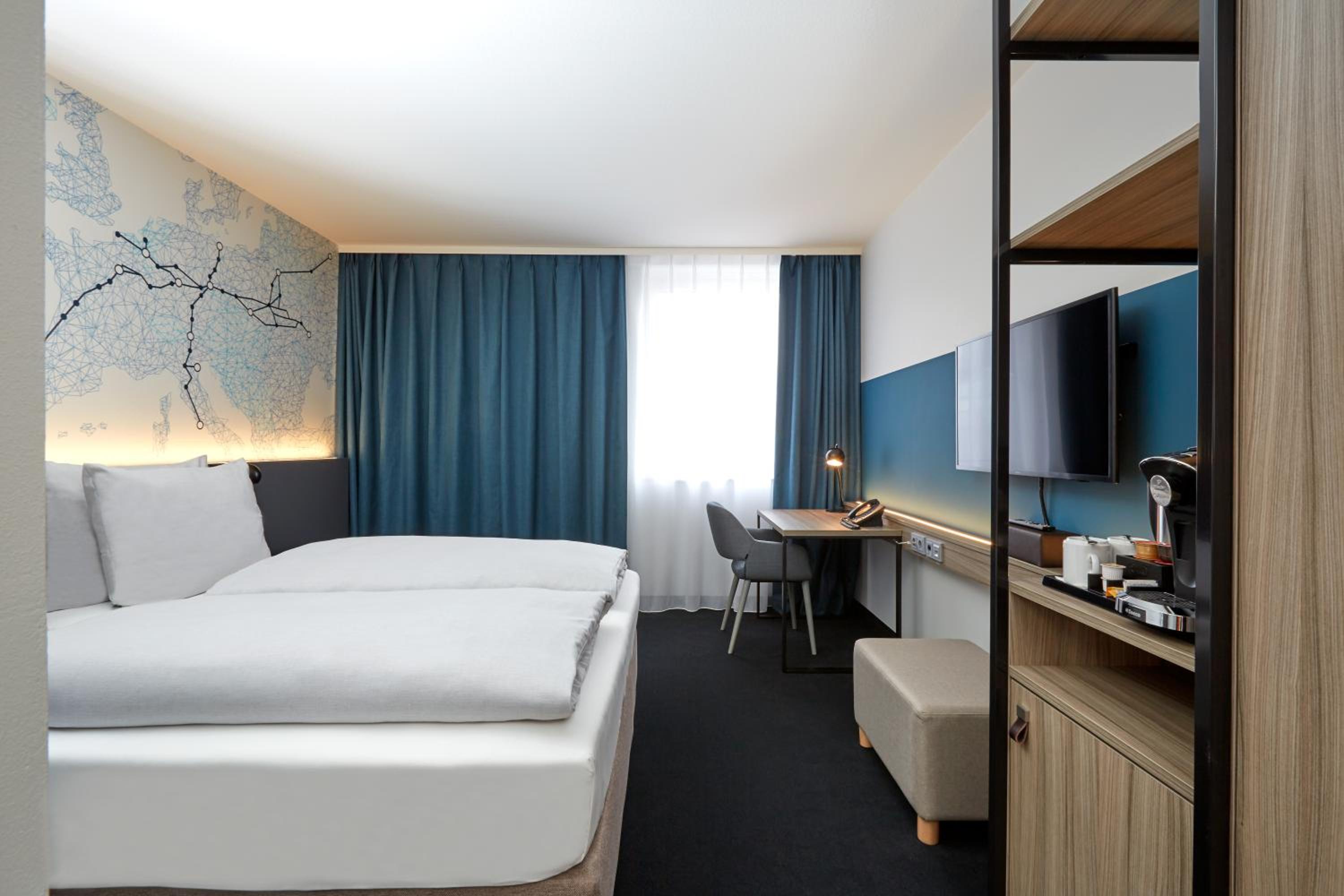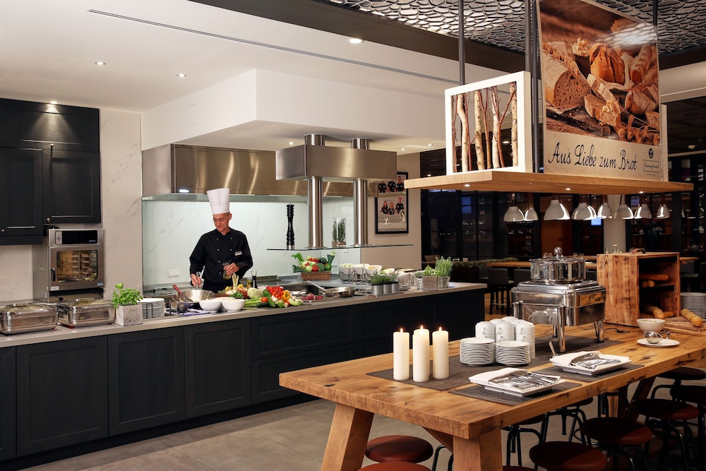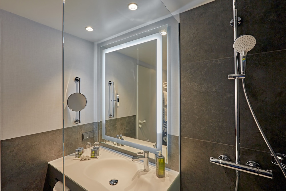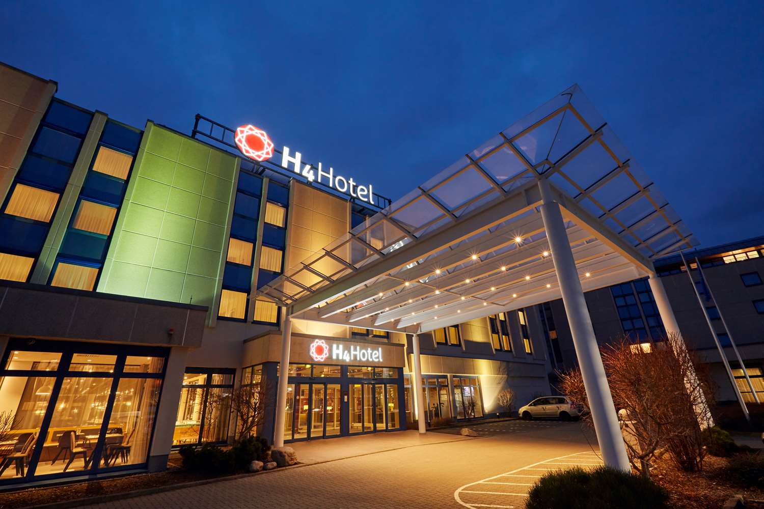 The H4 HOTEL LEIPZIG is a Tourist hotel. Located in Leipzig area. The nightlife/restaurants are easily accessible by taxi or bus from the hotel. Located in the Ost district of Leipzig, H4 Hotel Leipzig offers accommodation with a restaurant specializing in international cuisine, a bar/lounge, and a shared lounge. Guests can enjoy the full-service spa, a 24-hour health club, and a steam room. The hotel features free WiFi, a business center, conference space/meeting rooms (1200 sq ft / 111 sq meters), and free self-parking. The 291 guestrooms offer satellite programming, showers, hair dryers, phones, safes, desks, and a flat-screen TV. Additional amenities include a 24-hour front desk, sauna, terrace, and room service (limited hours). Express check-in/check-out and tour/ticket assistance are available. A continental, buffet and vegetarian breakfast is available daily for a fee. Leipzig/Halle Airport (LEJ) is located approximately 21-23.3 km away.Otel Konumu