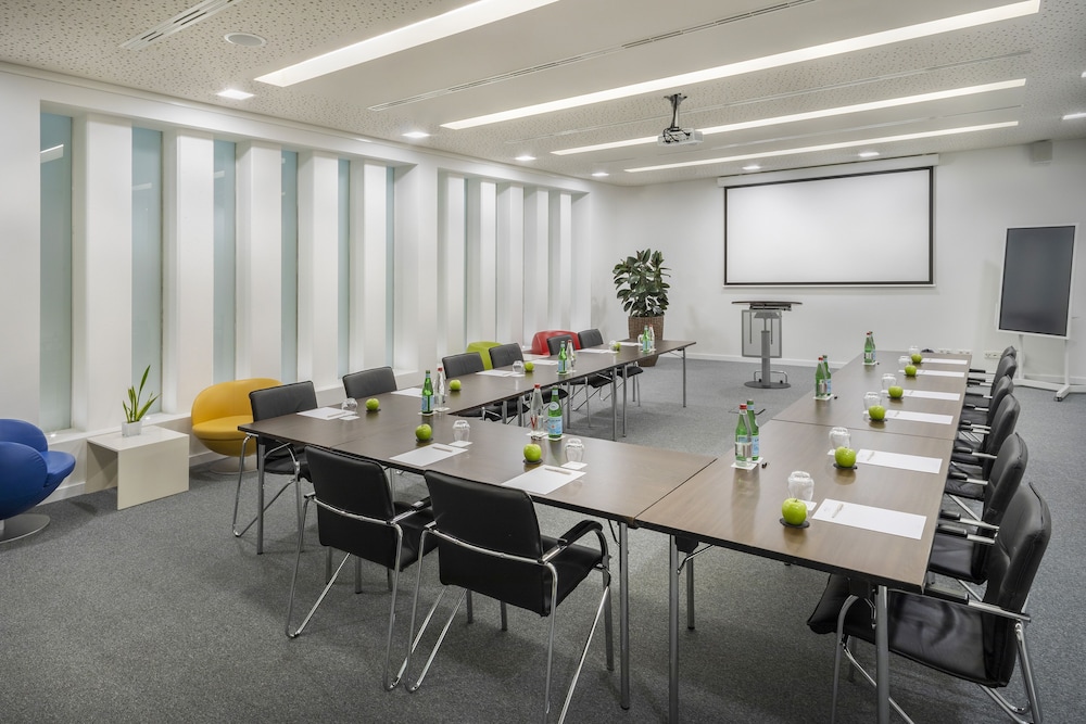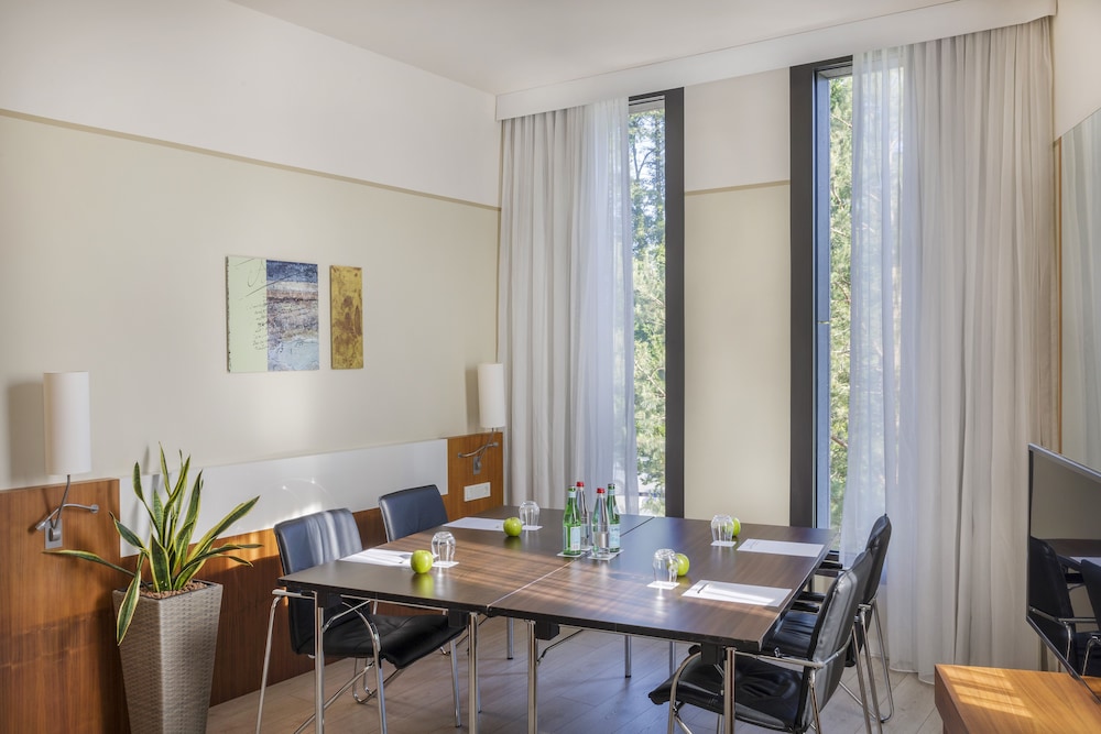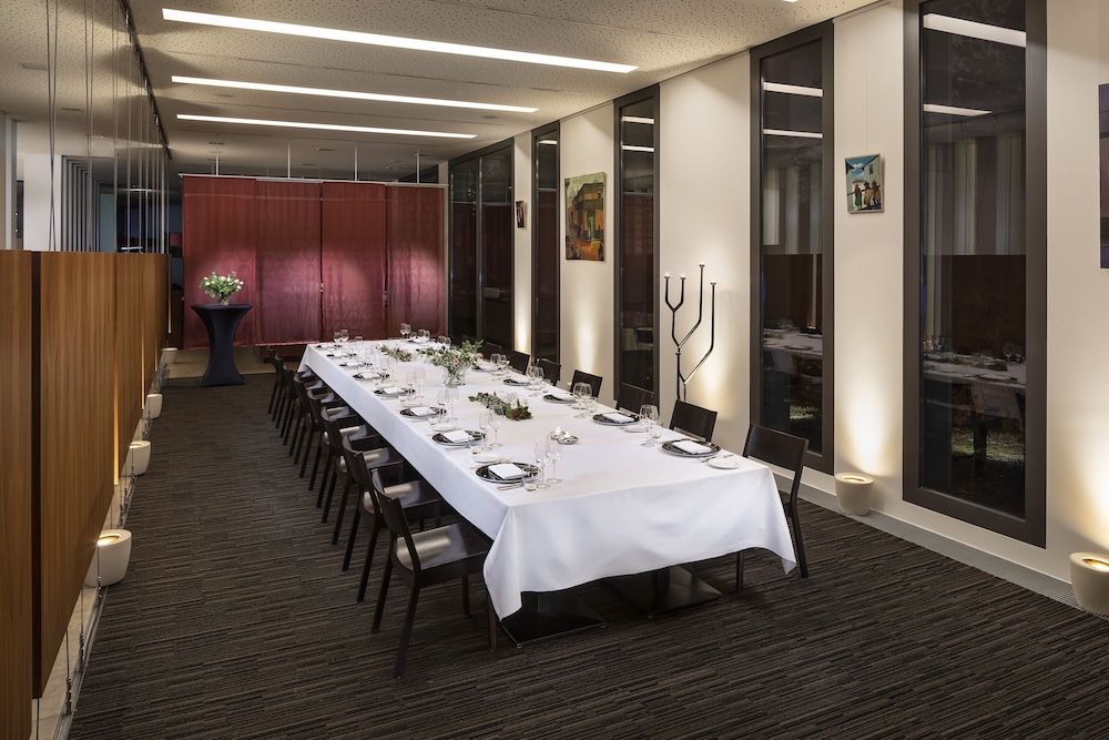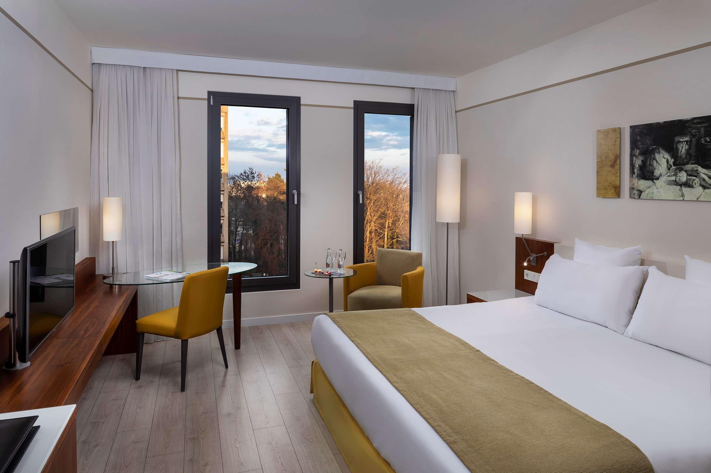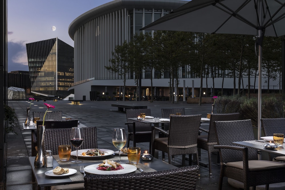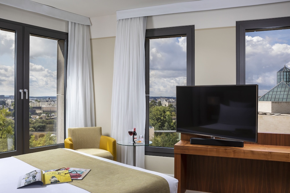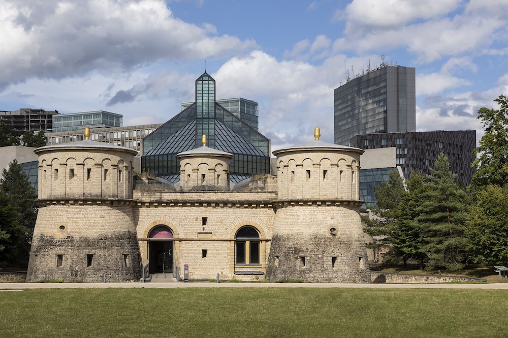 The Melia Luxembourg is a Tourist hotel. Located in Luxembourg area. The nightlife/restaurants are located in the hotel. The 4-star Superior Melia Luxembourg hotel is situated on Place d'Europe in Kirchberg, Luxembourg City's financial district, near European institutions including the Court of Justice, Parliament Secretariat, and Investment Bank. The Luxembourg Congress Centre, Philharmonie, and MUDAM are adjacent. The city centre is within walking distance, and Findel International Airport (LUX) is 8.9 km away. The hotel offers 161 guestrooms with minibars, flat-screen TVs, and complimentary wired internet access. Private bathrooms include designer toiletries and hair dryers. Amenities include a 24-hour business centre, express check-in, concierge services, and self-parking (fee applies). Dining options include the Goya Restaurant (international cuisine with garden views) and room service (limited hours). A bar/lounge is also available. A buffet breakfast (fee applies) is served daily from 7:00 AM to 10:00 AM. The hotel features a spa offering massages, though the fitness facilities and sauna are closed seasonally (March 19th to April 19th). Bicycle rentals are available, along with facilities for cyclists including secure storage, drying facilities, maps, and repair kits. Event facilities include conference space and meeting rooms. Free WiFi is available. The hotel is less than 50 metres from the Luxembourg Philharmonic and a 5-minute bus ride from the train station. A bus stop is located in front of the hotel. An electric vehicle charging station is nearby.Otel Konumu
