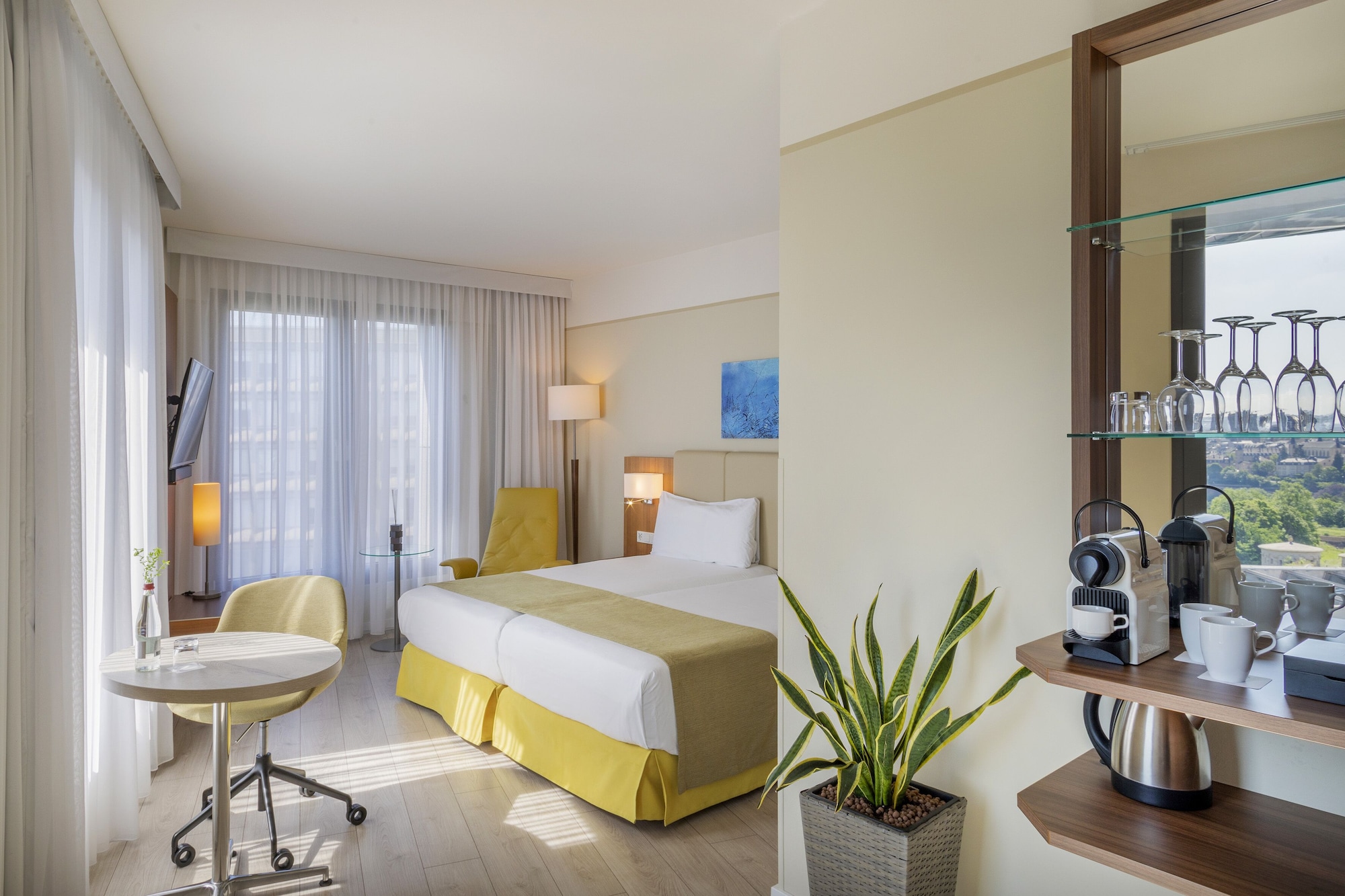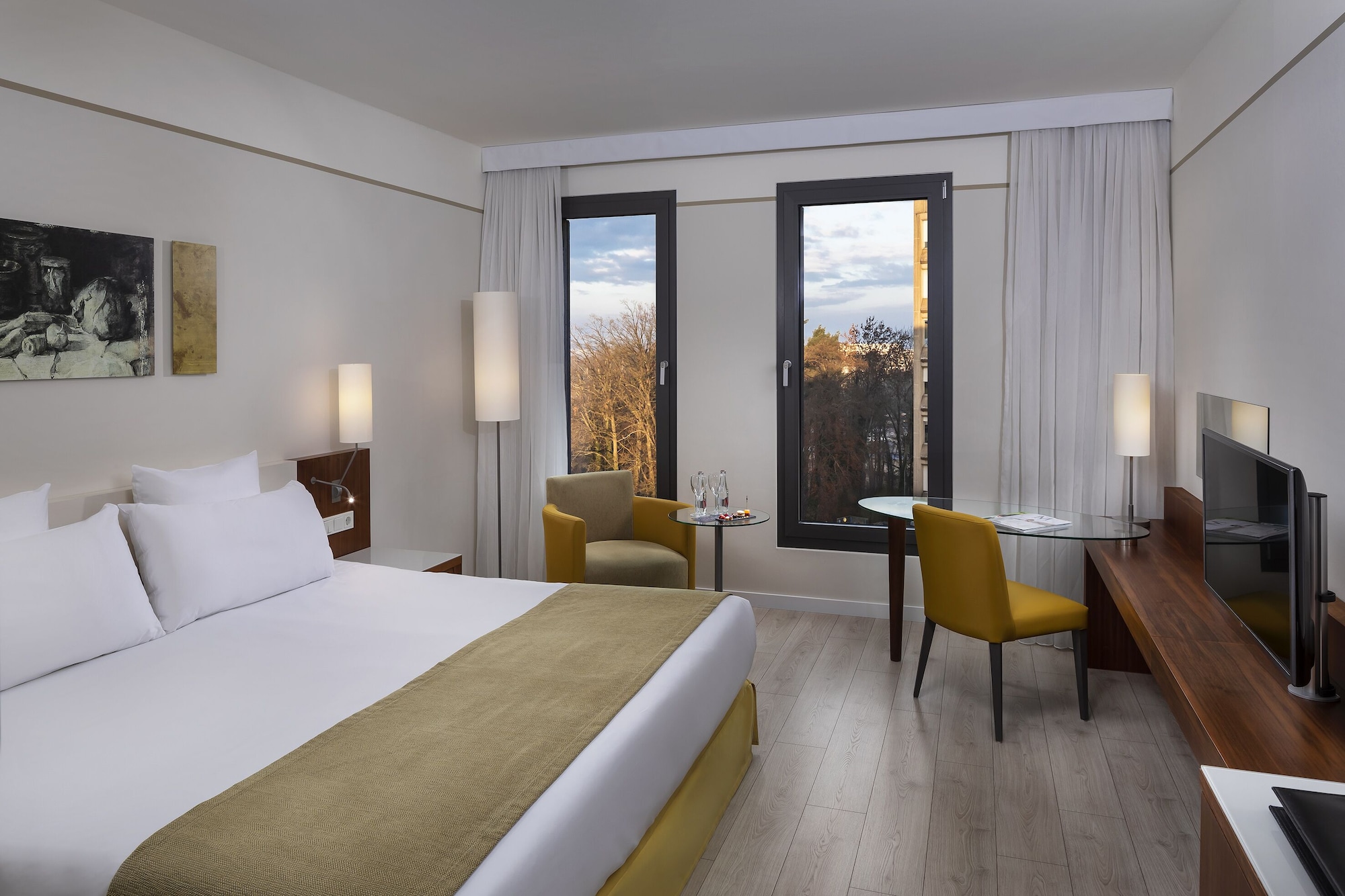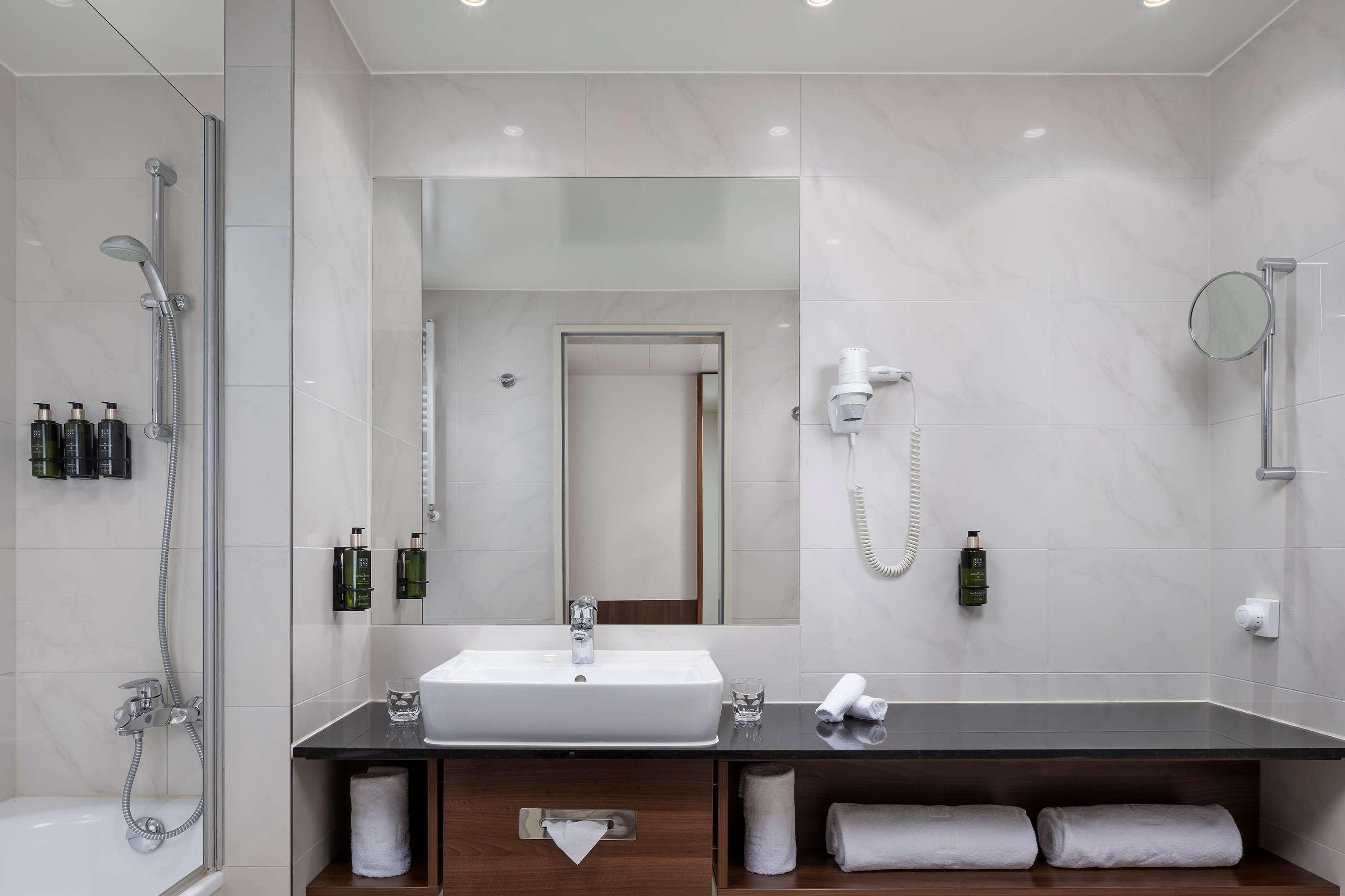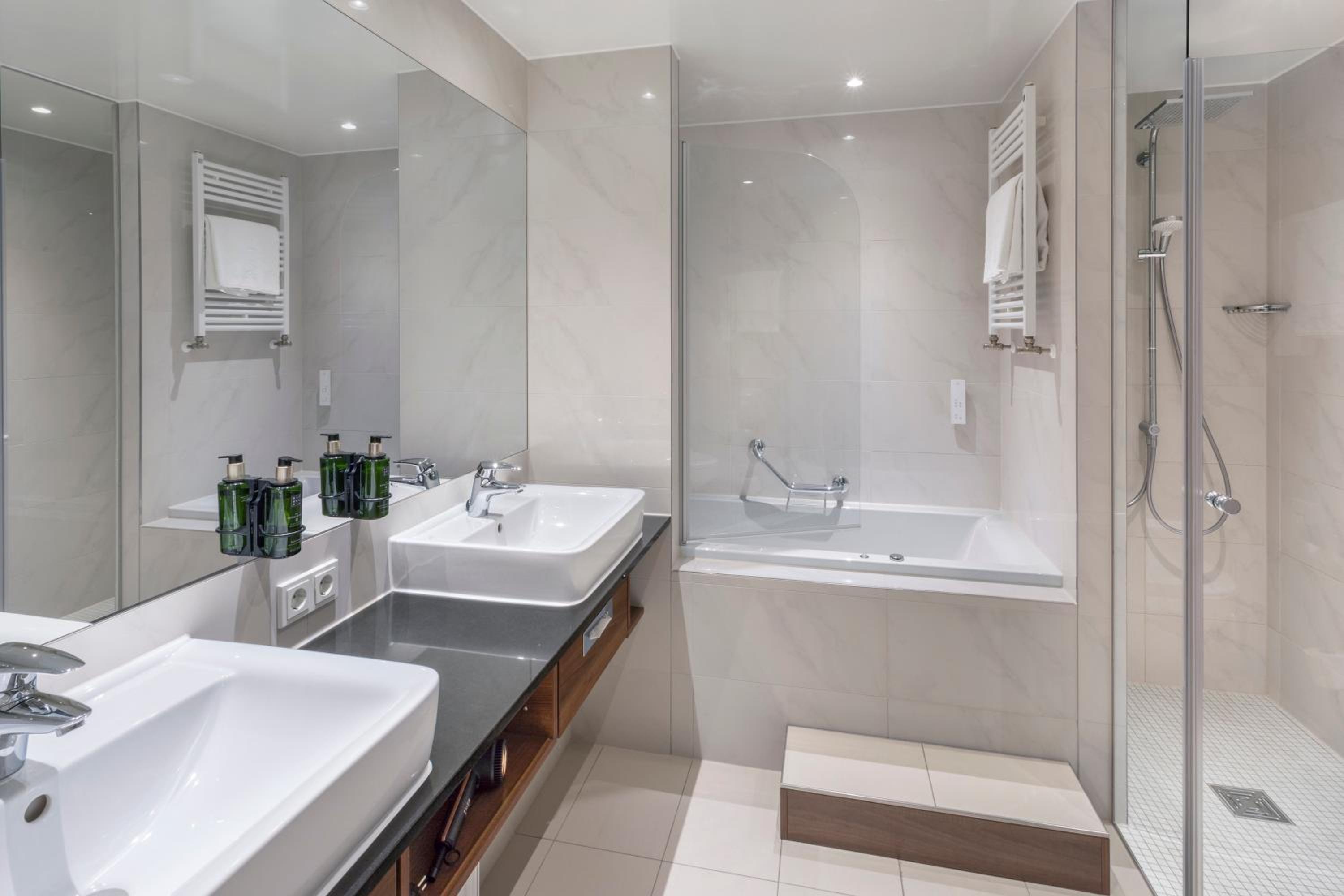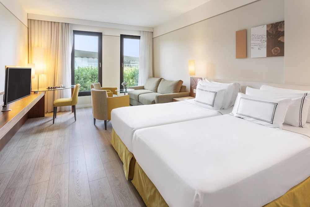 The Melia Luxembourg is a Tourist hotel. Located in Luxembourg area. The nightlife/restaurants are located in the hotel. The 4-star Superior Melia Luxembourg hotel is situated on Place d'Europe in Kirchberg, Luxembourg City's financial district, near European institutions including the Court of Justice, Parliament Secretariat, and Investment Bank. The Luxembourg Congress Centre, Philharmonie, and MUDAM are adjacent. The city centre is within walking distance, and Findel International Airport (LUX) is 8.9 km away. The hotel offers 161 guestrooms with minibars, flat-screen TVs, and complimentary wired internet access. Private bathrooms include designer toiletries and hair dryers. Amenities include a 24-hour business centre, express check-in, concierge services, and self-parking (fee applies). Dining options include the Goya Restaurant (international cuisine with garden views) and room service (limited hours). A bar/lounge is also available. A buffet breakfast (fee applies) is served daily from 7:00 AM to 10:00 AM. The hotel features a spa offering massages, though the fitness facilities and sauna are closed seasonally (March 19th to April 19th). Bicycle rentals are available, along with facilities for cyclists including secure storage, drying facilities, maps, and repair kits. Event facilities include conference space and meeting rooms. Free WiFi is available. The hotel is less than 50 metres from the Luxembourg Philharmonic and a 5-minute bus ride from the train station. A bus stop is located in front of the hotel. An electric vehicle charging station is nearby.Otel Konumu