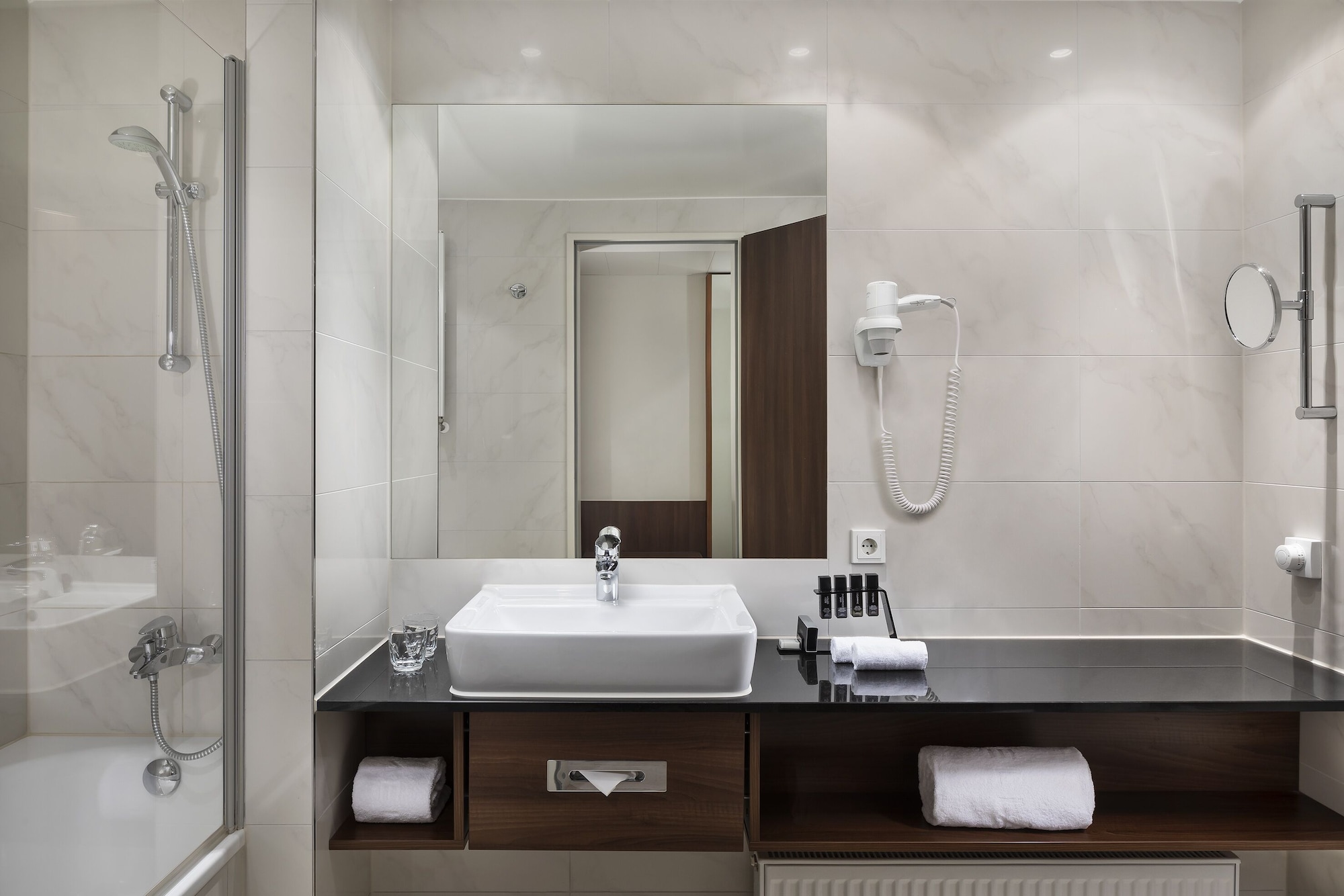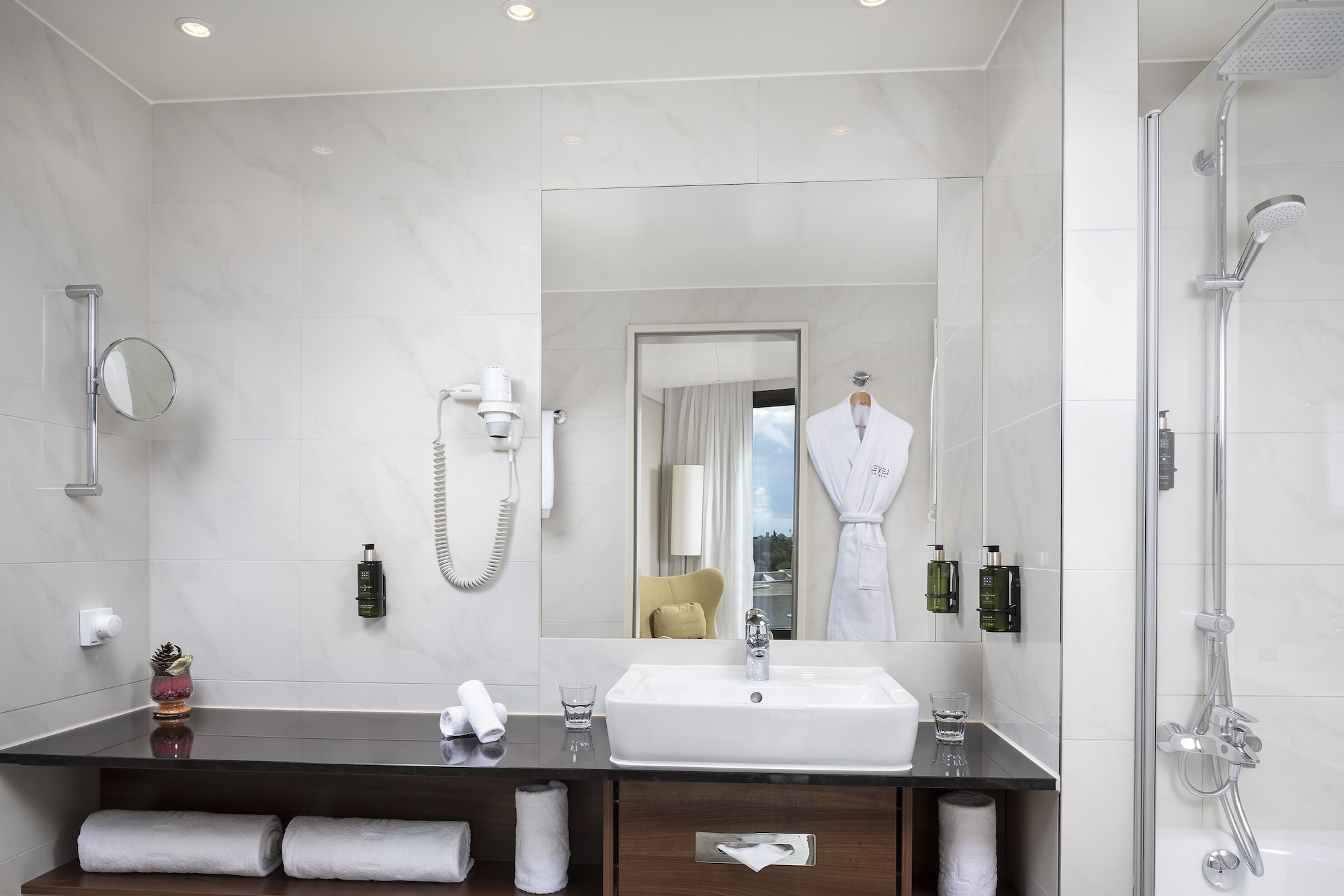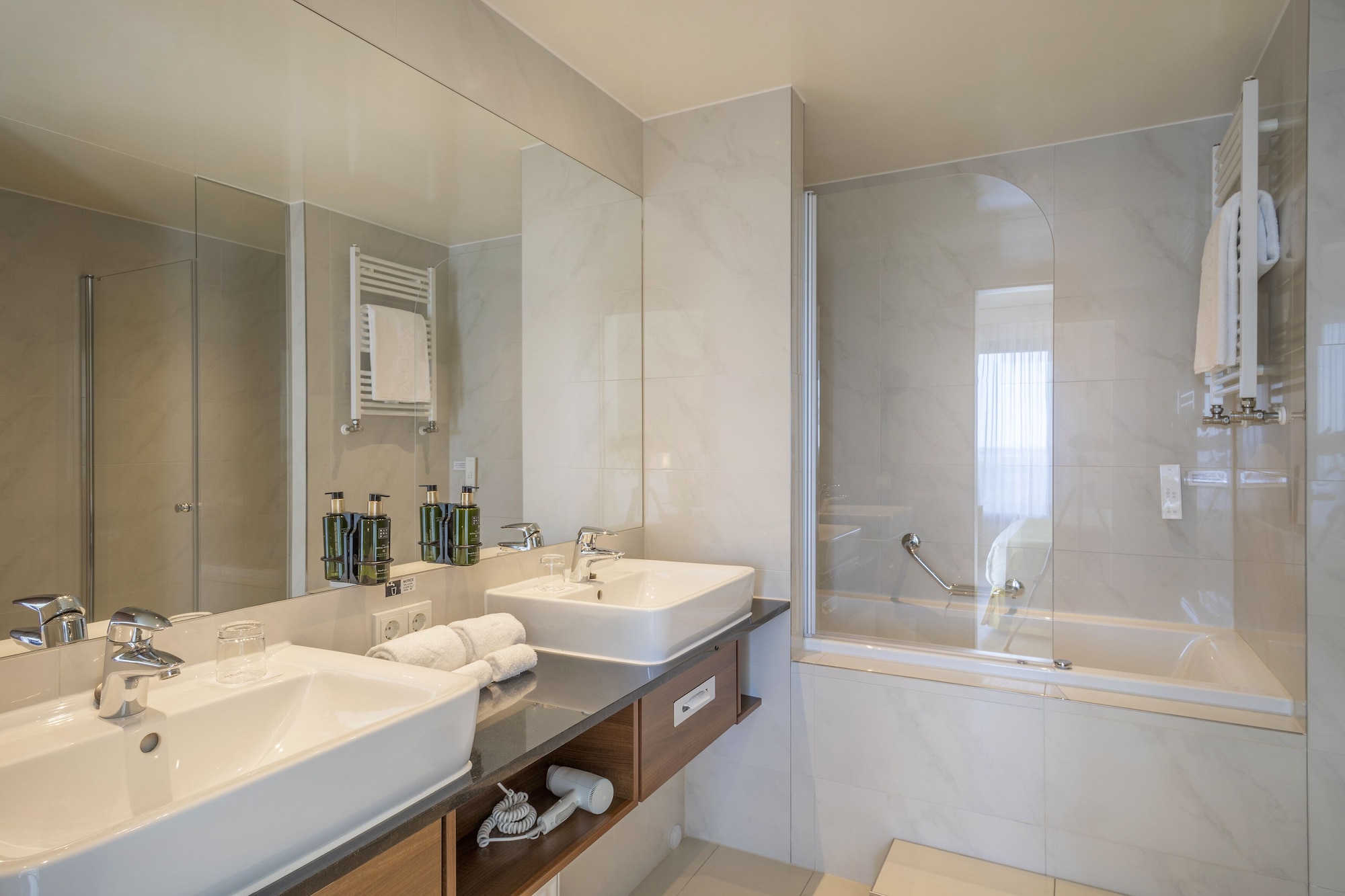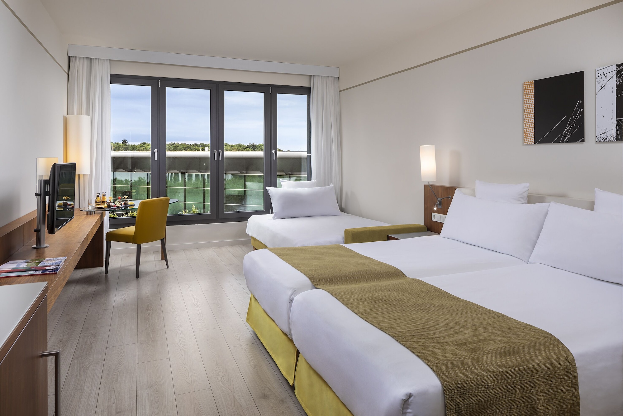 The Melia Luxembourg is a Tourist hotel. Located in Luxembourg area. The nightlife/restaurants are located in the hotel. The 4-star Superior Melia Luxembourg hotel is situated on Place d'Europe in Kirchberg, Luxembourg City's financial district, near European institutions including the Court of Justice, Parliament Secretariat, and Investment Bank. The Luxembourg Congress Centre, Philharmonie, and MUDAM are adjacent. The city centre is within walking distance, and Findel International Airport (LUX) is 8.9 km away. The hotel offers 161 guestrooms with minibars, flat-screen TVs, and complimentary wired internet access. Private bathrooms include designer toiletries and hair dryers. Amenities include a 24-hour business centre, express check-in, concierge services, and self-parking (fee applies). Dining options include the Goya Restaurant (international cuisine with garden views) and room service (limited hours). A bar/lounge is also available. A buffet breakfast (fee applies) is served daily from 7:00 AM to 10:00 AM. The hotel features a spa offering massages, though the fitness facilities and sauna are closed seasonally (March 19th to April 19th). Bicycle rentals are available, along with facilities for cyclists including secure storage, drying facilities, maps, and repair kits. Event facilities include conference space and meeting rooms. Free WiFi is available. The hotel is less than 50 metres from the Luxembourg Philharmonic and a 5-minute bus ride from the train station. A bus stop is located in front of the hotel. An electric vehicle charging station is nearby.Otel Konumu