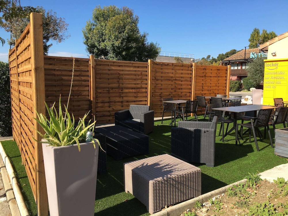 The Kyriad Direct Marseille Est - La Valentine is a Tourist hotel. Located in LA PENNE SUR HUVEAUN area. The nightlife/restaurants are easily accessible by taxi or bus from the hotel. Located in La Penne-sur-Huveaune, between Marseille and Aubagne, Kyriad Direct Marseille Est - La Valentine offers air-conditioned rooms with free Wi-Fi. It is easily accessible by the A50 motorway and offers convenient access to local businesses and attractions. Guest rooms feature a private bathroom and cable TV. The hotel serves a buffet breakfast and offers regional specialties for lunch and dinner in its restaurant. Guests can enjoy the terrace and garden. Other amenities include a television in a common area, a banquet hall, and a vending machine. The hotel provides free private parking and express check-in. Multilingual staff are available. Marseille city centre is a short drive away.Otel Konumu
